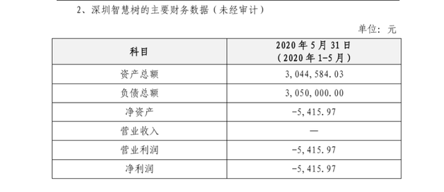 在公告中,九游j9官网首页入口-九游j9(中国)科技披露了深圳智慧树的主要财务数据(未经审计),如下图所示。